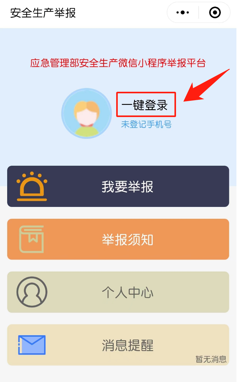 點擊【一鍵登錄】,登記手機號后可以開始舉報。