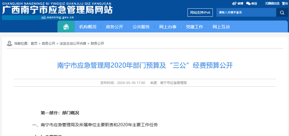 本年度報告是根據《中華人民共和國政府信息公開條例》(中華人民共和國國務院令第711號,以下簡稱《條例》)規定,由南寧市應急管理局編制。報告全文包括南寧市應急管理局2020年度政府信息公開工作總體情況、主動公開政府信息的情況、收到和處理政府信息公開申請情況、政府信息公開行政復議、行政訴訟情況、存在的主要問題及改進情況以及其他需要報告的事項六個部分。本年度報告中所列數據統計期限自2020年1月1日起至12月31日止。本年度報告在南寧市應急管理局門戶網站(http://www.oqsbrzt.cn)和南寧市政務服務中心、檔案館、公共圖書館等途徑全文公開。對本年度報告如有任何疑問,請與南寧市應急管理局政府信息公開工作領導小組辦公室聯系(地址:南寧市雙擁路48號,郵編:530022;電話:0771-5530733,電子郵箱:nnyjglj@163.com)。